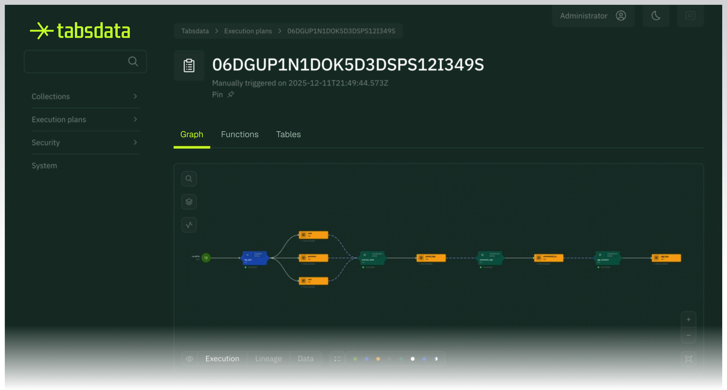In Tabsdata, tables are the core unit of data propagation. When a publisher updates a table, dependent tables automatically receive the new version based on the relationships defined in your dataflow. Transformations run without pipelines or orchestration, and the platform manages dependencies and consistency for you. The visual execution plan shows the dependencies and order of operations, so engineers can see exactly how each table is updated. Once complete, the execution plan becomes the table’s lineage, capturing the versions and states involved so the entire dataflow is fully reproducible.